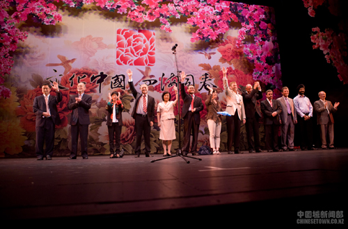 這是“文化中國(guó)•四海同春”大洋洲藝術(shù)團(tuán)繼澳大利亞4場(chǎng)演出后,在新西蘭的首演。演出開(kāi)始前,中國(guó)國(guó)務(wù)院僑辦副主任趙陽(yáng)、中國(guó)駐奧克蘭總領(lǐng)事廖菊華、新西蘭國(guó)會(huì)在野黨領(lǐng)袖菲爾•戈夫(Hon Phil Goff)、國(guó)家黨主席彼得•戈菲羅(Peter goodfellow)、新西蘭民族事務(wù)部長(zhǎng)黃徐毓芳及承辦這一演出的新西蘭中國(guó)團(tuán)體聯(lián)合會(huì)會(huì)長(zhǎng)黃瑋璋發(fā)表了講話。他們向新西蘭華僑華人致以新春祝賀,并對(duì)華僑華人在新西蘭經(jīng)濟(jì)、文化發(fā)展方面所作的積極貢獻(xiàn)給予高度評(píng)價(jià)。