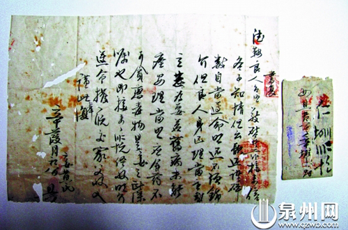 上圖為泉州市檔案館收藏的最早的僑批,系1911年十一月初八,一名晉江安海人的妻子寄給遠(yuǎn)在菲律賓的丈夫的“回批”(回信),信中還寫到將丈夫寄來的錢都用在了哪里。“回批”是僑批的一種,由于是由故鄉(xiāng)人寄往海外的回信,所以目前國內(nèi)數(shù)量不多,更加珍貴。(葉舒雯 陳一妮)
