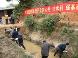 這次冬修水利勞動,是廣西壯族自治區(qū)僑聯(lián)積極響應(yīng)廣西壯族自治區(qū)黨委、自治區(qū)人民政府號召的一次主題實(shí)踐活動。當(dāng)日,一到勞動現(xiàn)場,廣西僑聯(lián)主席韋干身先士卒,帶頭跳入2米深的水渠里,帶領(lǐng)大家迅速投入到勞動中去。工地上,廣西僑聯(lián)會旗和“自治區(qū)僑聯(lián)攜手全區(qū)人民興水利,強(qiáng)基礎(chǔ),惠民生”橫幅迎風(fēng)飄揚(yáng),大家情緒高漲,干勁十足,有的鏟淤泥、搬石塊,有的鋤雜草、修整渠面……,有人身上濺滿了泥漿也全然不顧。