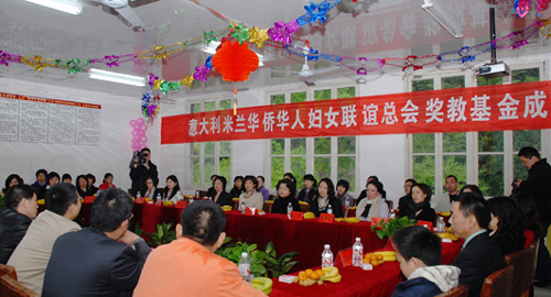 中新網(wǎng)4月7日電 據(jù)文成縣外僑辦消息,4月2日,在浙江省文成縣龍川中心學(xué)校隆重舉行意大利米蘭華僑華人婦女聯(lián)誼總會獎教基金成立儀式。由榮譽(yù)會長廖小平、會長趙小敏率領(lǐng)的米蘭華僑華人婦女聯(lián)誼總會代表團(tuán)一行16位愛心女士,出席了獎教基金成立儀式,為龍川中心學(xué)校送上首期獎教基金20000歐元。