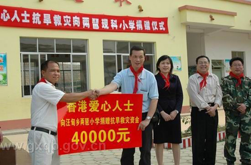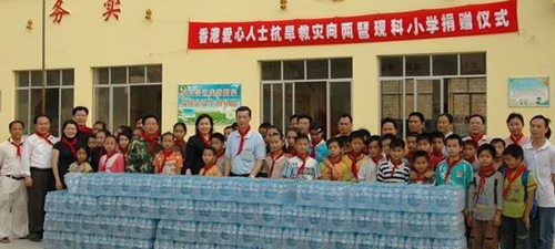 近段時(shí)間,廣西百色市右江區(qū)旺甸瑤族鄉(xiāng)兩琶村小學(xué)遭遇特大旱災(zāi),學(xué)校蓄水池?cái)嗨嗳眨鹆松鐣?huì)各界的廣泛關(guān)注,也牽動(dòng)了廣西壯族自治區(qū)、百色市、右江區(qū)僑辦領(lǐng)導(dǎo)的心。經(jīng)廣西僑辦搭橋牽線,香港謝家忠、葉林慧儀、原秋明等愛(ài)心人士,心系瑤寨小學(xué)生,千里奔瑤鄉(xiāng),將一縷縷清澈的泉水運(yùn)送到了旺甸瑤族鄉(xiāng)兩琶村小學(xué)。