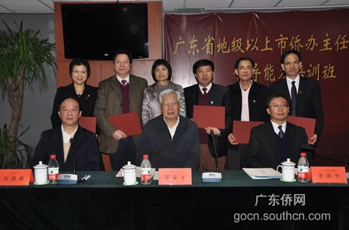 中新網(wǎng)4月23日電 據(jù)廣東僑網(wǎng)消息,4月22日上午,廣東省地級(jí)以上市僑辦主任(局長(zhǎng))領(lǐng)導(dǎo)能力培訓(xùn)班舉行結(jié)業(yè)典禮。原全國(guó)政協(xié)副主席、北京大學(xué)政府管理學(xué)院院長(zhǎng)羅豪才出席了結(jié)業(yè)典禮并與全體學(xué)員合影留念。