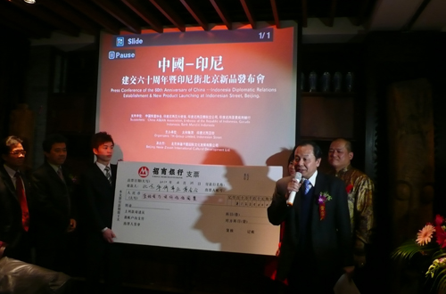中新網(wǎng)4月28日電 據(jù)北京市僑聯(lián)消息,在中印建交六十周年之際,北京市部分歸僑、僑眷和來華的印尼人士于4月24日在北京炎黃藝術(shù)館子園會所俱樂部舉行了紀念活動,同時還舉辦了由印尼陽成集團有限公司建立印尼街北京品在京發(fā)布,這是繼上海印尼街后又一個舉措。