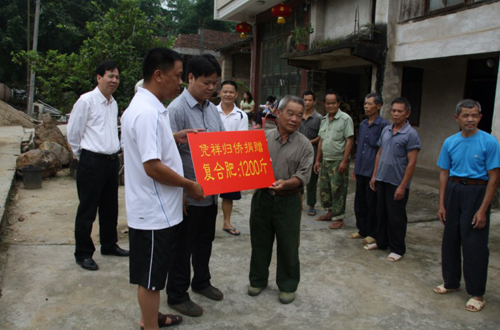 平而村地處中越邊境,有散居歸僑15戶。憑祥市今年遭遇罕見的特大干旱,農(nóng)民的春耕生產(chǎn)受到嚴(yán)重的影響。為了幫助散居在農(nóng)村的歸僑開展春耕生產(chǎn),憑祥市僑聯(lián)在僑界中廣泛開展“一幫一”、“多幫一”的“僑幫僑”支農(nóng)惠農(nóng)活動(dòng),得到僑資企業(yè)的大力支持,他們慷慨解襄,出資為農(nóng)村的歸僑購(gòu)買了農(nóng)用肥料,幫助他們解決生產(chǎn)上的困難。此次憑祥市僑聯(lián)專程到平而村為歸僑送去價(jià)值2000元肥料。(周德林)