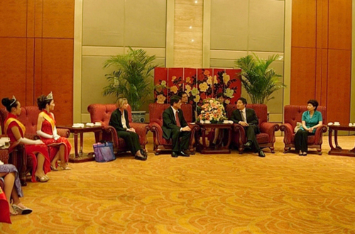 中新網(wǎng)6月23日電 據(jù)國(guó)僑辦網(wǎng)站消息,6月17日晚,國(guó)務(wù)院僑辦副主任任啟亮在北京新世紀(jì)飯店會(huì)見(jiàn)并宴請(qǐng)了由夏威夷中華總商會(huì)主席劉廣義率領(lǐng)的“第六十一屆水仙花皇后友好訪問(wèn)團(tuán)”全體成員。