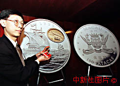 澳門貨幣暨匯兌監(jiān)理署三十日發(fā)行一枚澳門回歸紀(jì)念銀幣,這是該署為紀(jì)念澳門特別行政區(qū)政府於九九年十二月二十日成立之系列紀(jì)念幣中的第一組。銀幣面值一百圓澳門幣,重一盎司,為澳門法定貨幣,售價(jià)六十八美元或五百二十五港幣。
