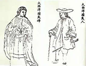 1751年,乾隆皇帝下令編撰《皇清職貢圖》一書(shū)時(shí),由中國(guó)宮廷畫(huà)師描繪的葡萄牙男人、婦女的形象。