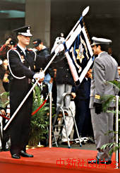 圖片說明: 澳門回歸的后過渡期,公務(wù)員本地化進(jìn)程不斷加快,圖為白英偉(左)上升警察廳長,結(jié)束了這一職位三百年來由葡人掌握的歷史。