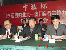 被列入慶祝澳門回歸祖國正式慶典活動之一的"中旅杯九九迎回歸北京至澳門自行車?yán)?十四日在北京舉行新聞發(fā)布會:屆時將有來自全國各省市及香港、澳門的十二支代表隊共七十二名運(yùn)動員參加這一中國有史以來規(guī)模最大、水平最高、距離最長的比賽。