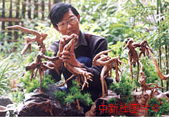 為迎接澳門回歸,浙江省義烏市民間根雕藝術(shù)家樓賢泰先生,近日創(chuàng)作完成了大型根雕作品“百鶴盼歸圖”。 作者:盧國(guó)良