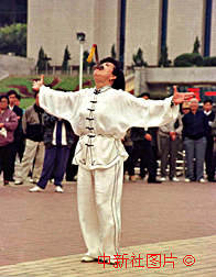 多次出訪世界各地的"女神劍"陳建華日前在福州華武功夫指導中心、福州青少年武術(shù)培訓中心等單位舉辦的迎澳門回歸武術(shù)表演活動中表演"特技吞劍"絕活。