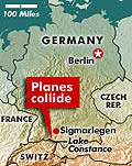 德國(guó)柏林當(dāng)?shù)貢r(shí)間7月2日凌晨(北京時(shí)間7月2日晨7時(shí)),巴登-符騰堡州地方政府的發(fā)言人稱,兩架大型飛機(jī)于7月1日夜23時(shí)(北京時(shí)間7月2日晨6時(shí))左右在德國(guó)與瑞士交界的博登湖(又譯康斯坦茨湖)上空相撞,兩架飛機(jī)隨后墜落在湖邊的公路上。當(dāng)?shù)鼐椒Q,墜毀的波音飛機(jī)是波音-757貨機(jī),另一架是來(lái)自白俄羅斯的圖-154,估計(jì)可能有150人死亡。